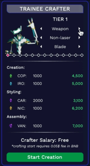 Choose your crafter, one for each tier