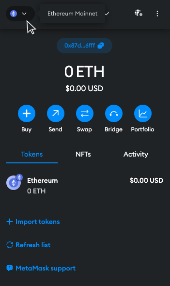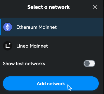 Open MetaMask, from the top left click on the Ethereum logo to access a new menu that allows us to add networks by clicking on "Add Network".