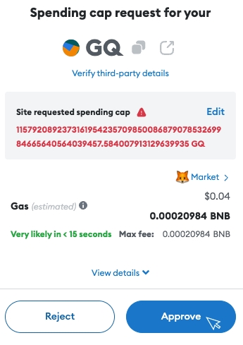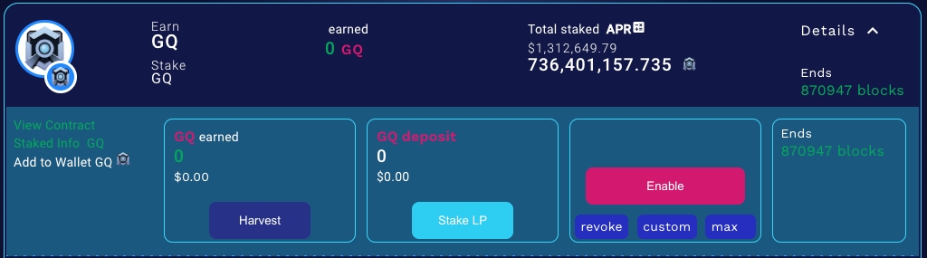 Use the "Enable" button and accept the spending limit for GQ clicking on "Approve".
