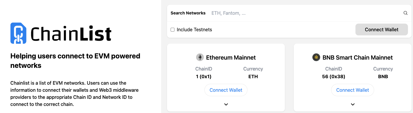 En chainlist.org, puedes encontrar varias redes e incluso varios RPC para la misma cadena.