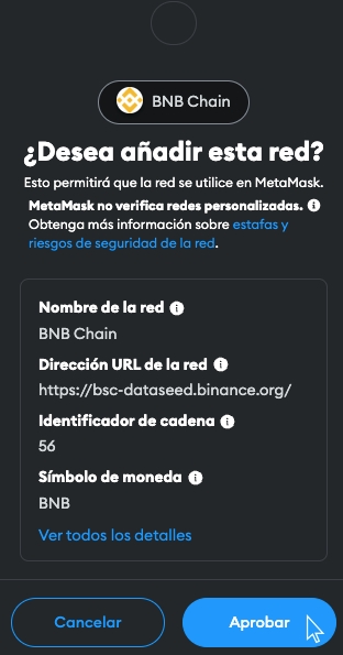 Verifica los detalles de RPC y luego haga clic en "Aprobar/Approve" para finalizar.