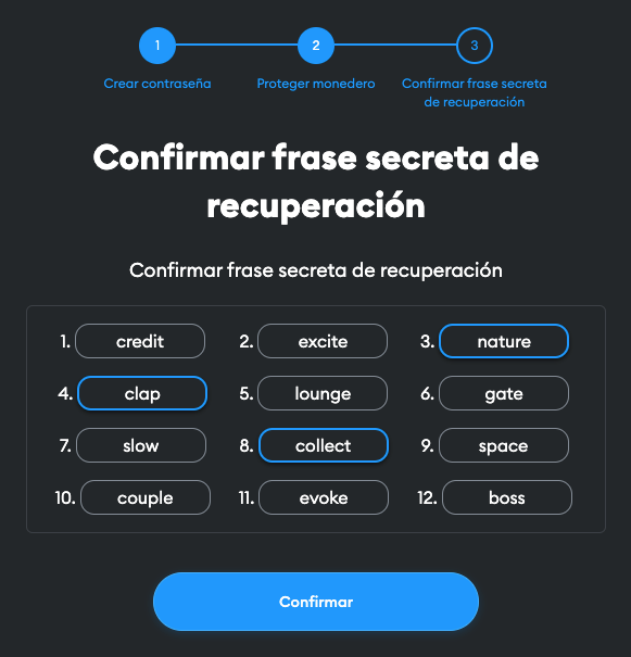 Confirma tu frase semilla