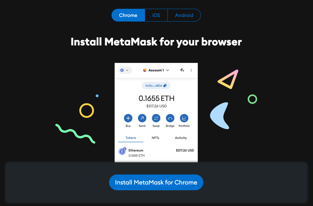 <figure><img src="https://content.gitbook.com/content/Jh5Wm4g1IKljfZMesYtH/blobs/cT996d0Nm6dMULPSHQDp/1-Install%20Metamask.png" alt=""><figcaption></figcaption></figure>