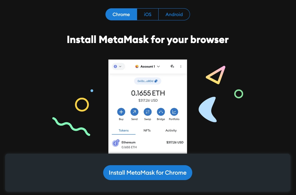 Primero, haz clic en "Instalar/Install" para visitar la página de instalación... Por ejemplo, si eres usuario de Google Chrome, haz clic en "Instalar MetaMask para Chrome/Install Metamask for Chrome".