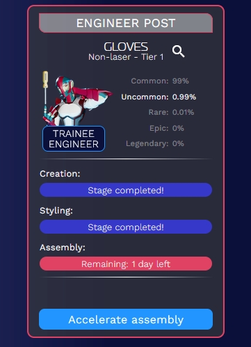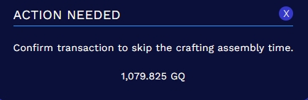 Si no puedes esperar a finalizar tu creación, puedes ⚡️ acelerar cualquiera de los tres procesos pagando GQ a cambio.