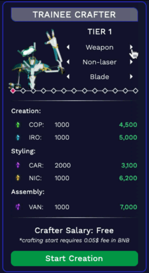 Si es la primera arma/armadura que creas, debes empezar por el **Tier 1**.