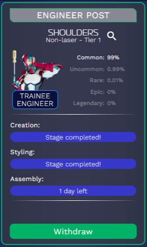 Recuerda, cuanto más experimentado sea el ingeniero, mayores posibilidades de crear un objeto de rareza superior.