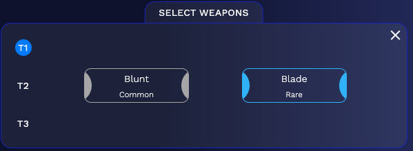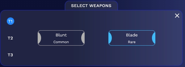 En el siguiente menú, puedes ver las diferentes armas/armaduras que posees actualmente divididas por tiers y rareza.