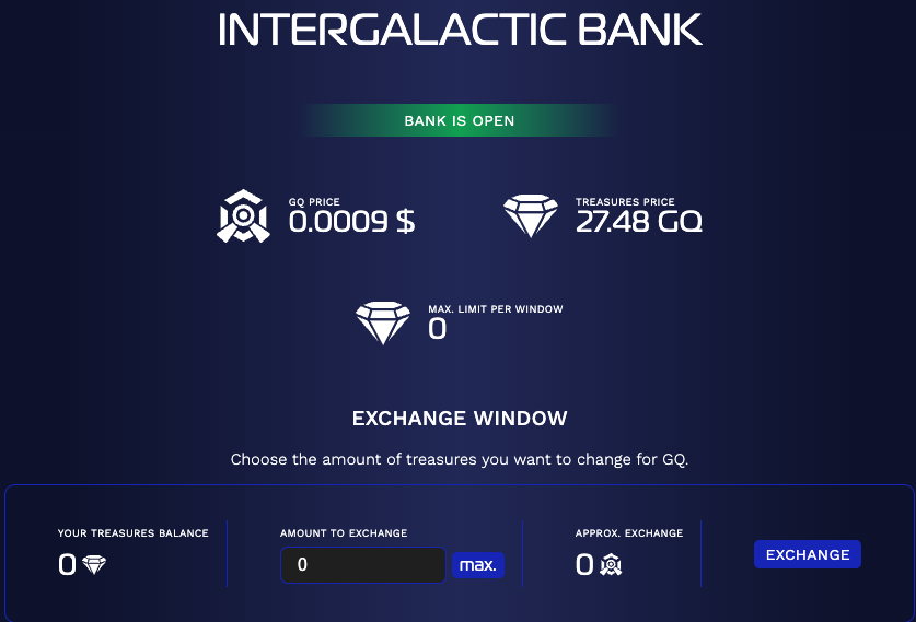 * El ratio de intercambios $GQ<>Tesoros no siempre es el mismo, en algunas ocasiones será mas interesantes que en otras intercambiar tus tesoros por $GQ.